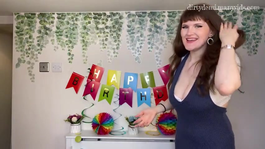 In this video you (Pat) have come to spend your birthday weekend with your aunty Demi! I’m so excited to welcome you and start by surprising you with birthday decorations! I tell you I’ve been so grateful for your kindness in welcoming me to the family after I married your uncle – I want to use this weekend to really show you how much I appreciate you. You’re my favourite nephew by far!! As we sit down and I start giving you your presents you notice how short my dress is, I keep flashing you my panties. It’s happening so often you think it must be on purpose… I keep flashing until you see a butt plug peeking through behind my g-string! You ask me why I’m wearing a butt plug and I reveal to you that for your birthday I waned to gift you a really… formative memory. I want you to have your first anal experience with me! I’m so much more experienced than the girls at your university – please will you let me share this special memory with you?